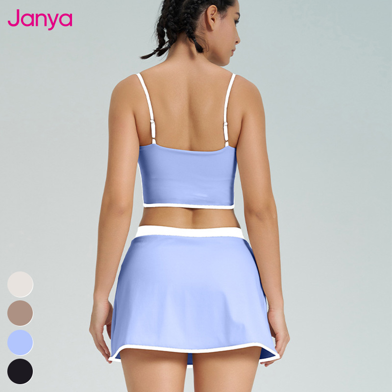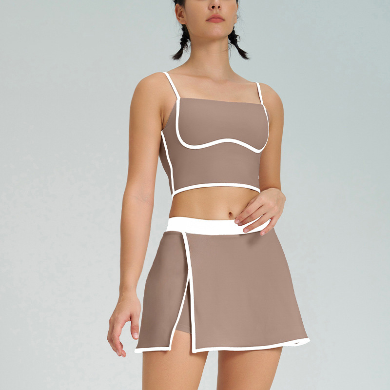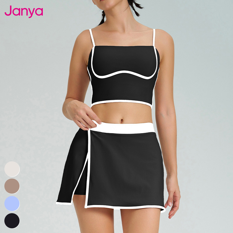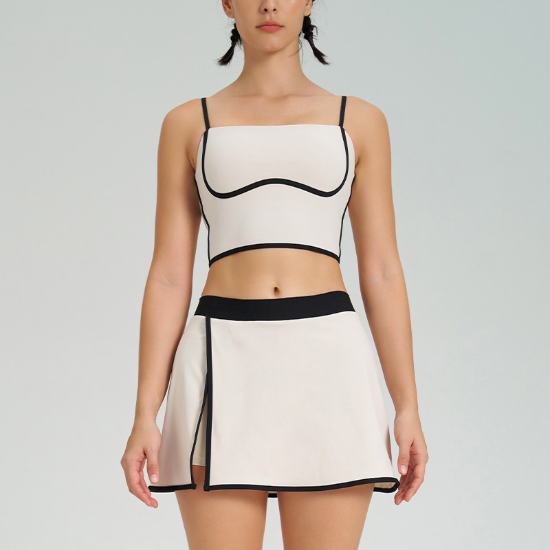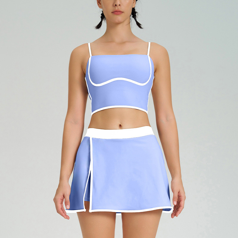 0 Review for 2025 New Fitness Sports Clothing Sets Color Blocking Yoga Tank Top Bra 2 in 1 Skirts Suit Golf Tennis Skirt 2 Piece Set Women