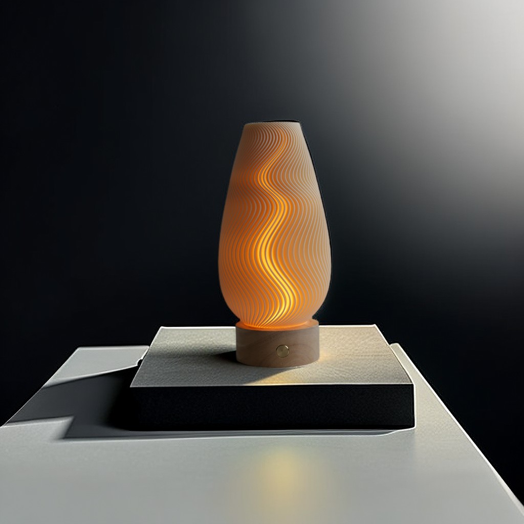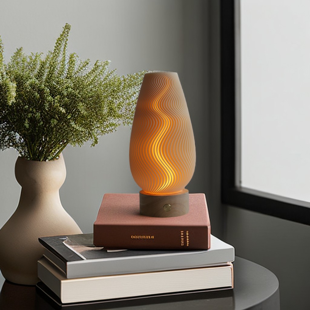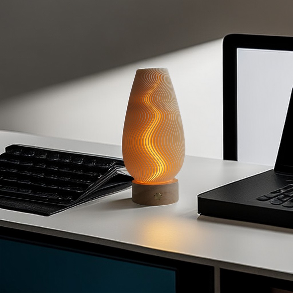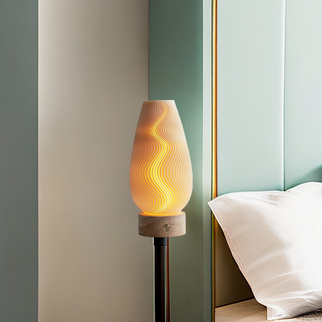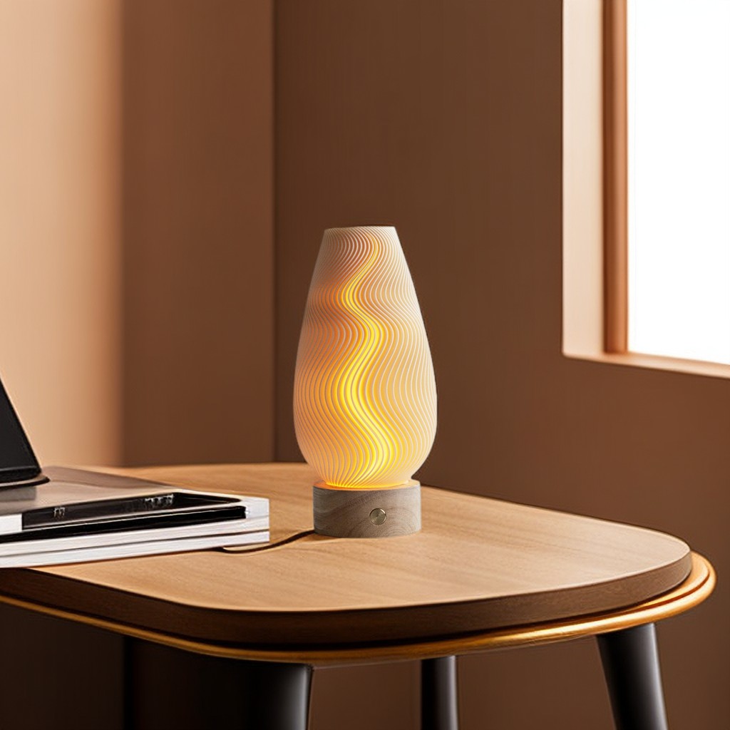 0 Review for Eco-Friendly Upm Wood Fiber PLA Modern 3D Printed Wavy Table Lamp for Creative Home Lighting