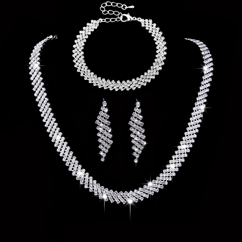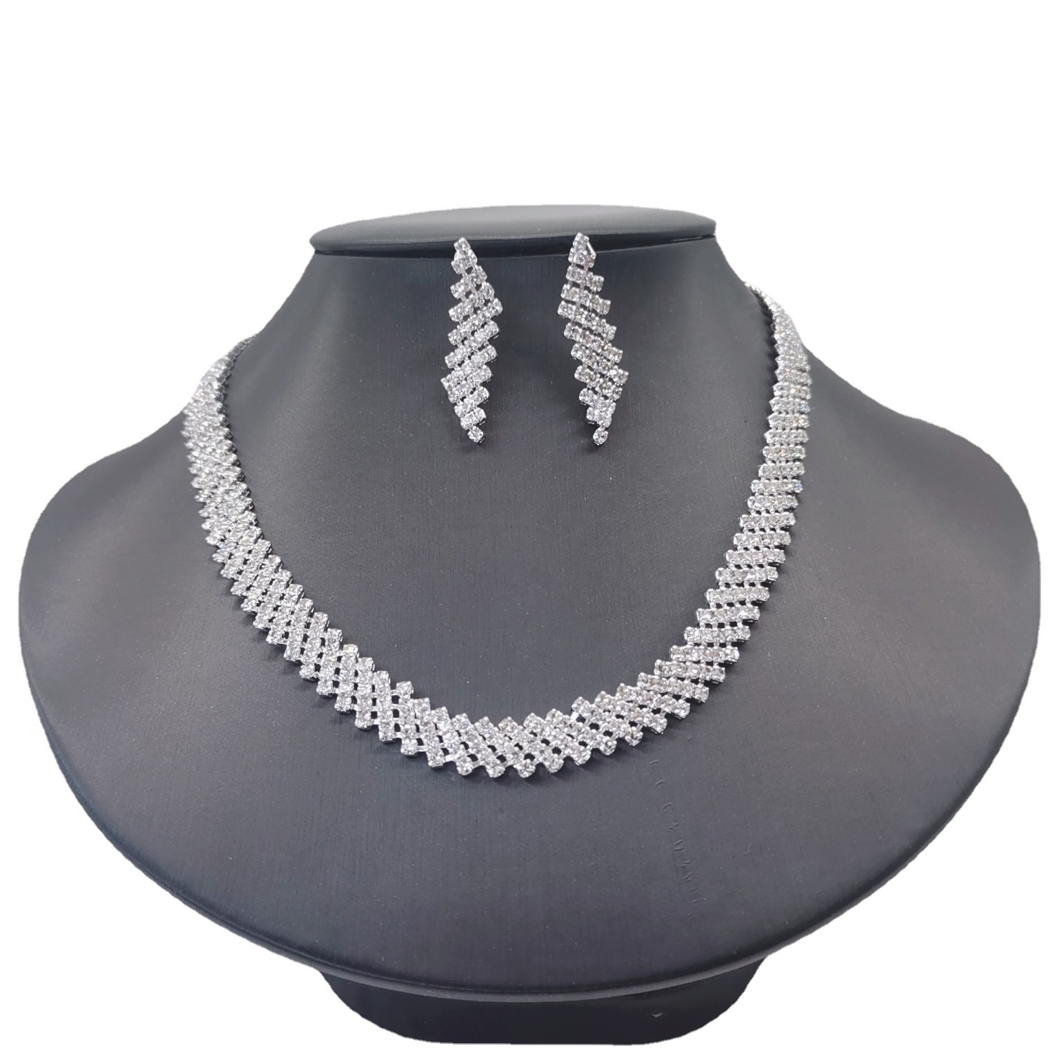 0 Review for Wholesale Bridal Jewelry Set on AliExpress Dazzling Full Diamond Starlight Necklace & Earrings Gold Plated for Women