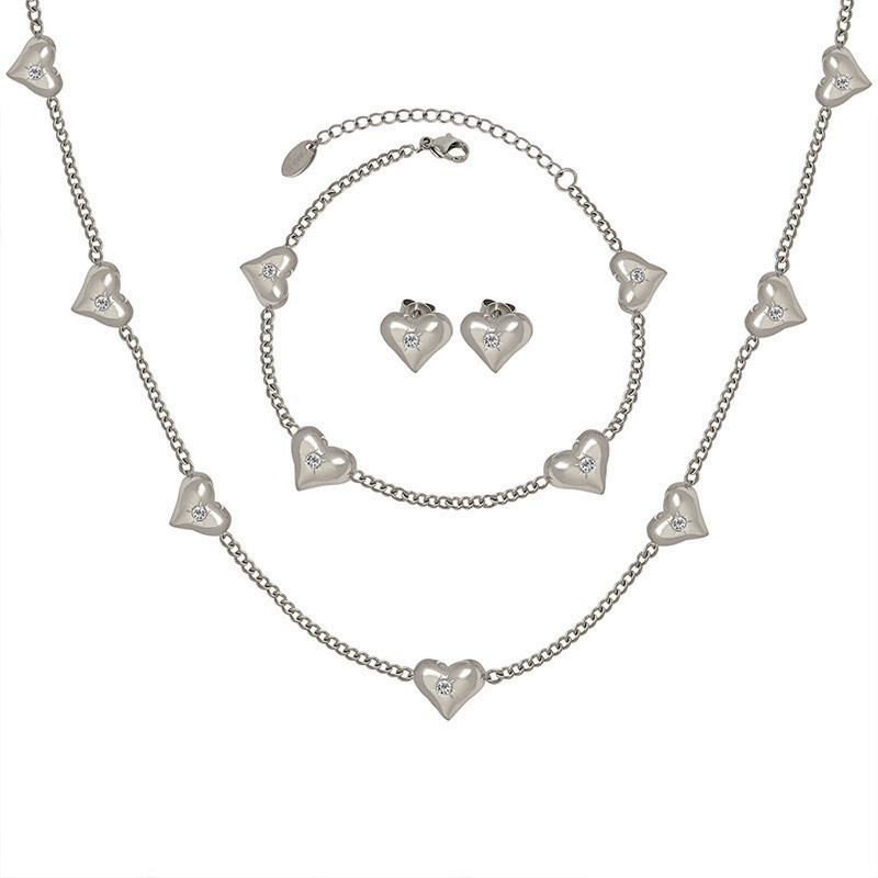 0 Review for Women Fashion 18k Gold Plated Stainless Steel Zirconia Zircon Heart Charm Link Necklace Bracelet Earrings Jewelry Sets for Women